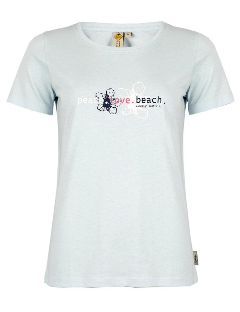 Roadsign theme 3 damski t-shirt peace-love-beach, niebieski 18-005739-2, 18-005739-3, 18-005739-1, 18-005739-4, 18-005739-5