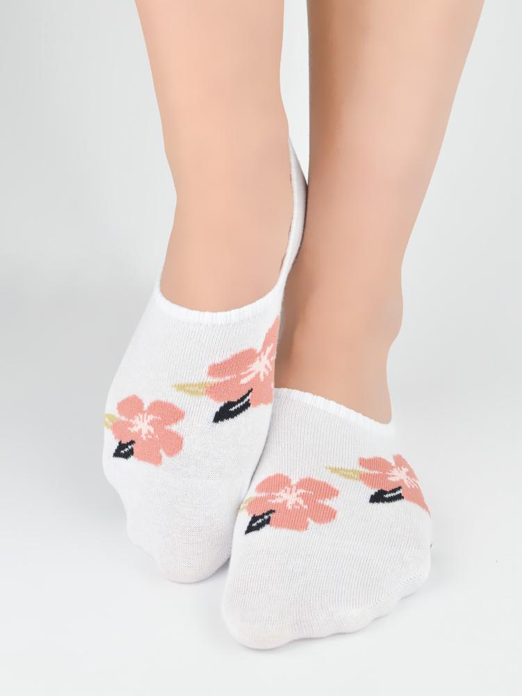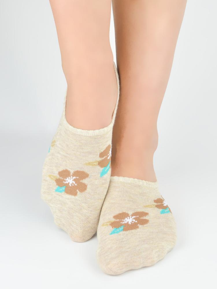 Stopki damskie st099 bawełna kwiaty silikon